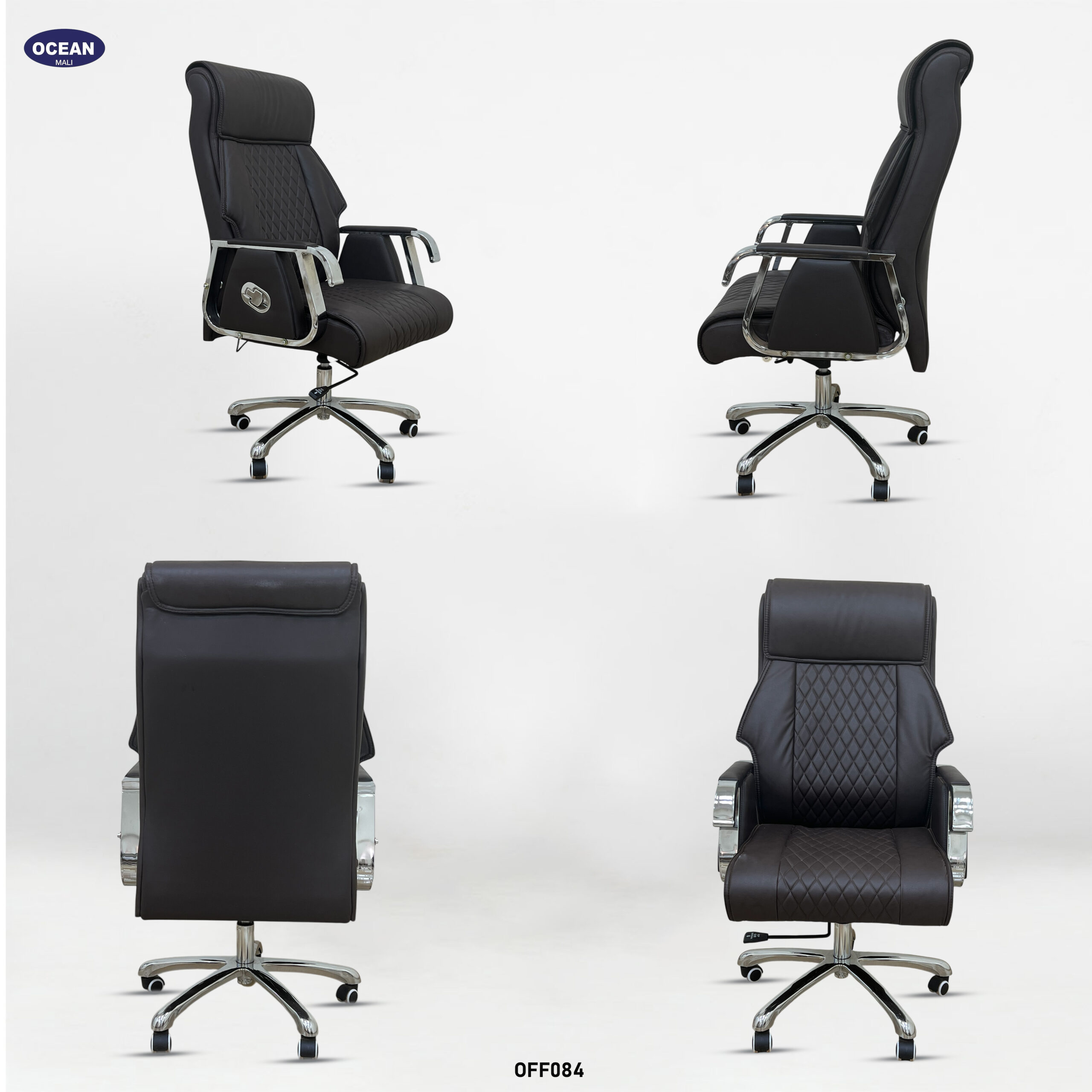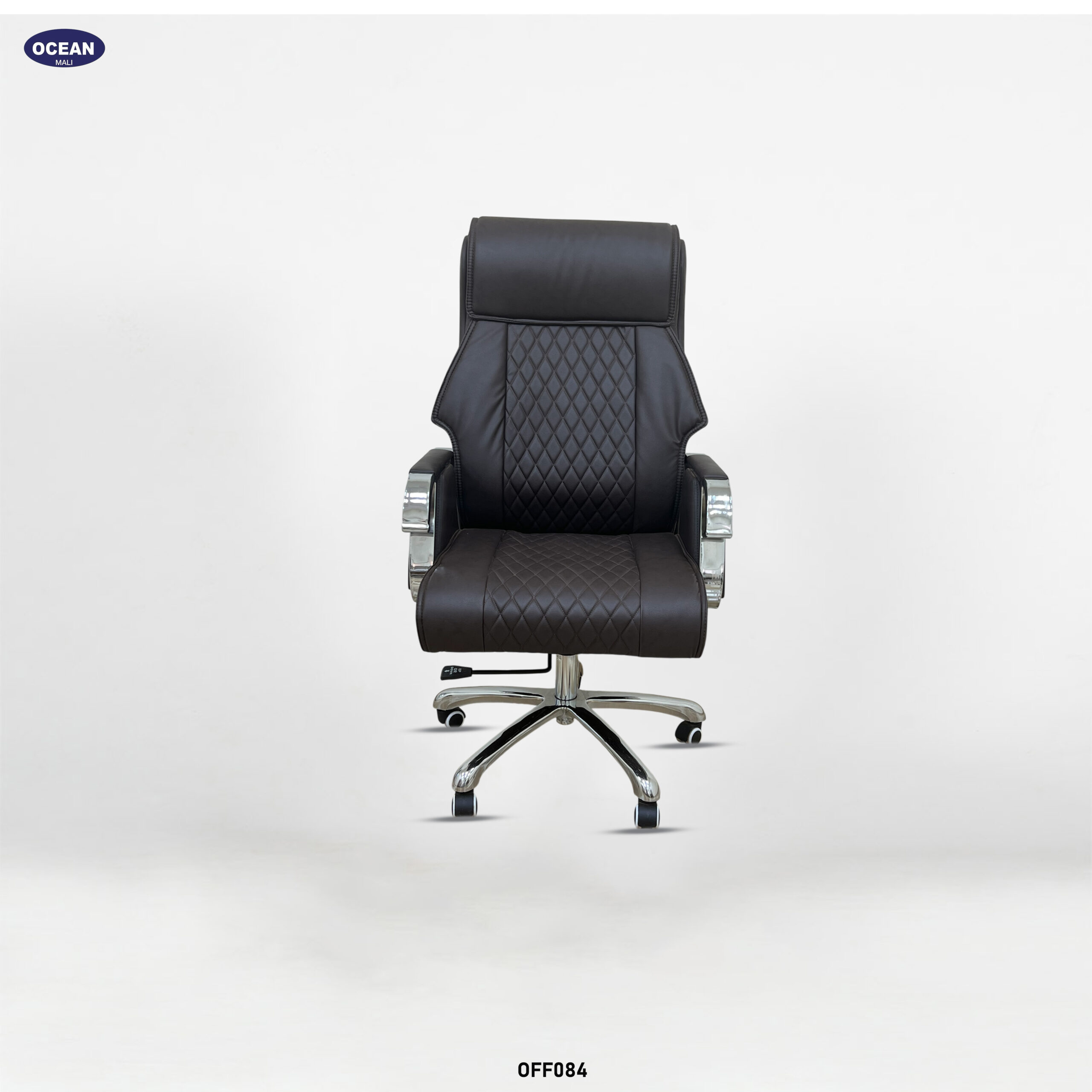 Ce fauteuil de bureau de direction, sophistiqué et élégant, arbore un design matelassé distinctif. Son dossier haut offre un soutien optimal et est orné d’un motif en losanges au centre, ajoutant une touche de luxe et d’attrait visuel. Revêtu d’un tissu marron riche et chaleureux , en cuir ou en synthétique de haute qualité, il évoque une élégance traditionnelle.