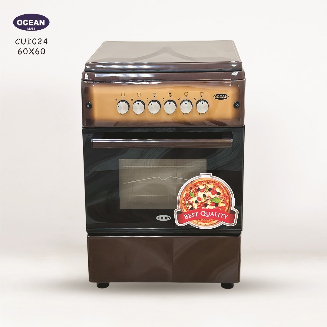 Découvrez la cuisinière à gaz Ocean CUI024, un appareil de cuisine élégant et performant, parfait pour toutes vos préparations culinaires. Dotée de dimensions compactes de 60×60 cm, elle s’intègre harmonieusement dans toutes les cuisines. Son design bicolore marron et noir apporte une touche de modernité. La partie supérieure est équipée de plusieurs brûleurs à gaz avec des boutons de commande faciles d’accès, tandis que le grand four intégré vous permet de rôtir, cuire et gratiner vos plats préférés. L’image met en avant un autocollant “BEST QUALITY”, garantissant la fiabilité et la durabilité de l’appareil. Idéale pour les foyers recherchant un équipement de cuisson polyvalent et de qualité.