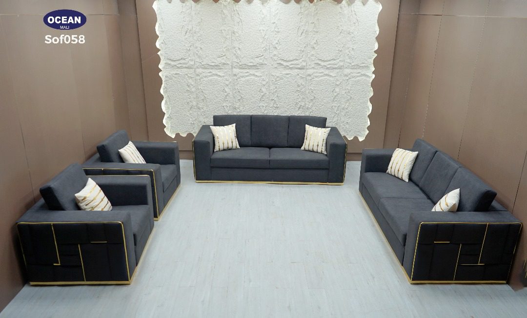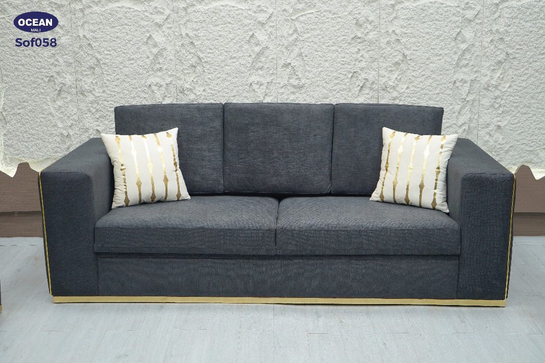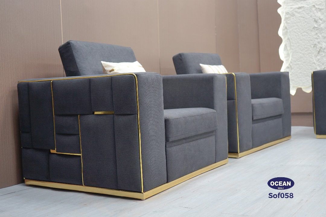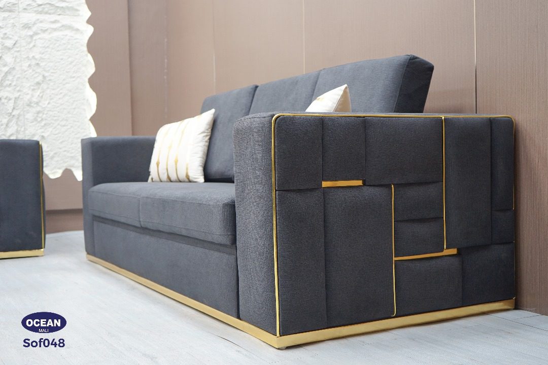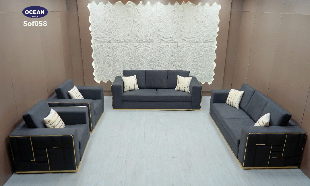 Cet ensemble de canapés moderne et luxueux est conçu pour être la pièce maîtresse d’un salon élégant. Il se compose de trois éléments revêtus d’un tissu de couleur gris foncé ou anthracite, offrant à la fois confort et sophistication.