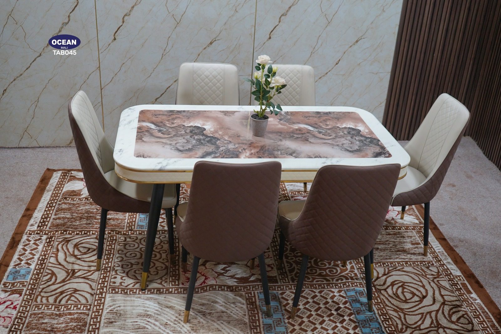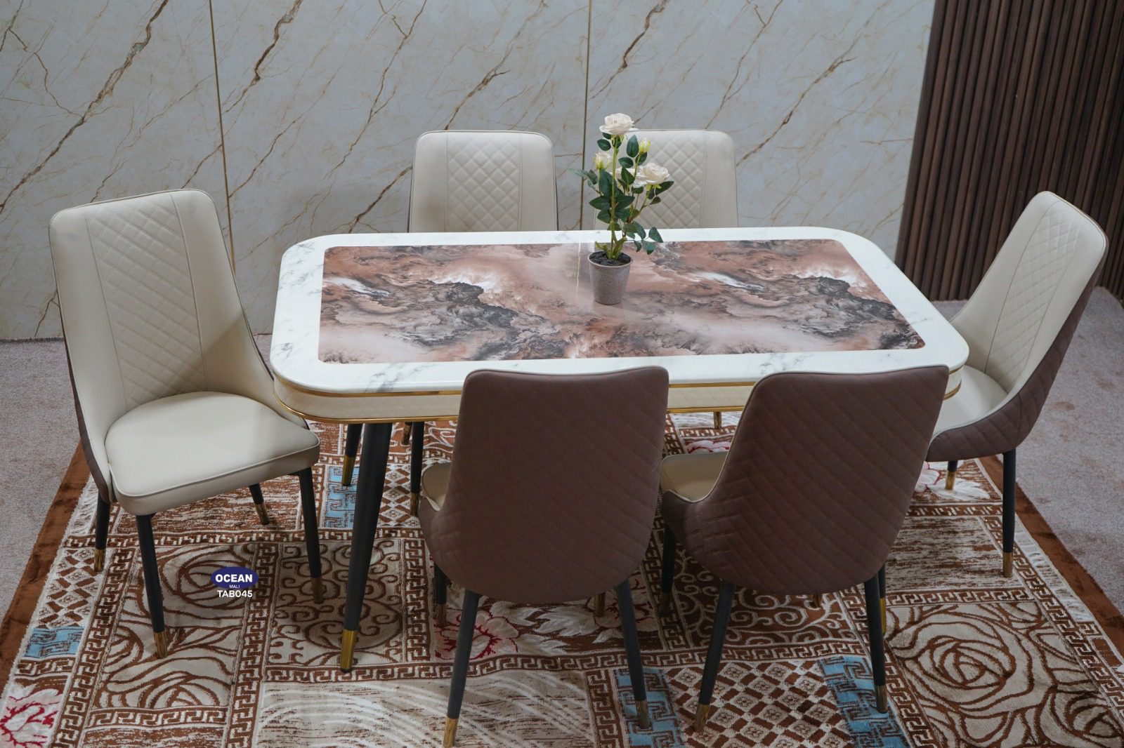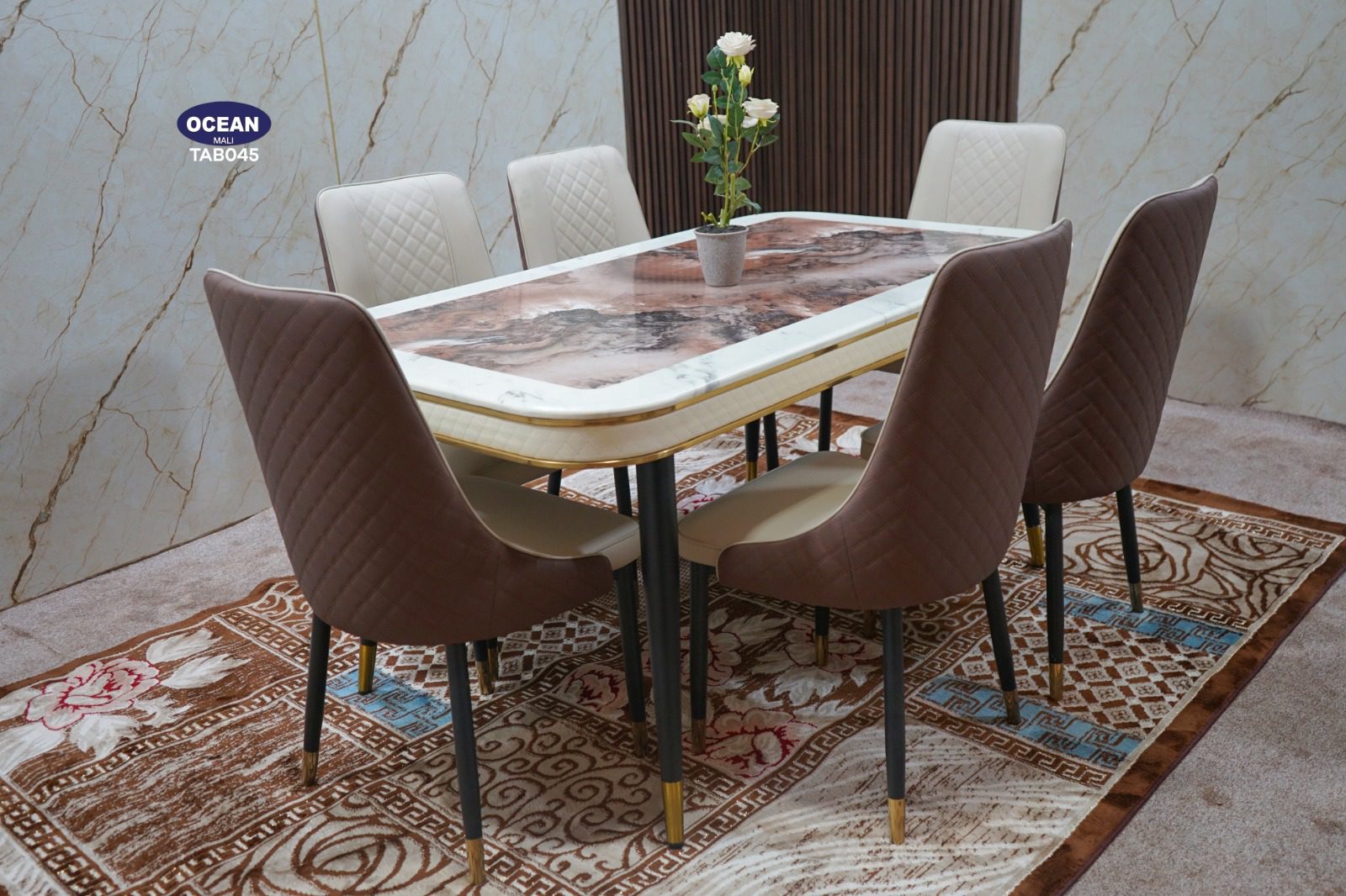 Sublimez votre intérieur avec l’Ensemble Dining Élégance Royale, une parfaite harmonie entre modernité et raffinement. Sa table au design chic, accompagnée de chaises confortables aux finitions capitonnées, crée un espace accueillant et sophistiqué. Idéal pour partager des moments inoubliables en famille ou entre amis, tout en apportant une touche luxueuse à votre salle à manger.