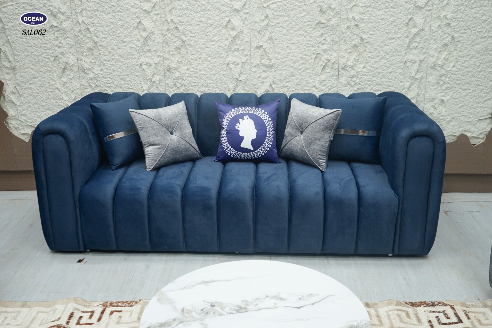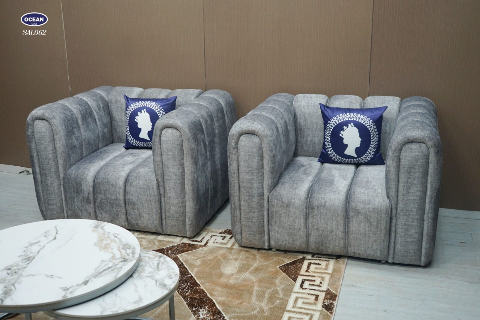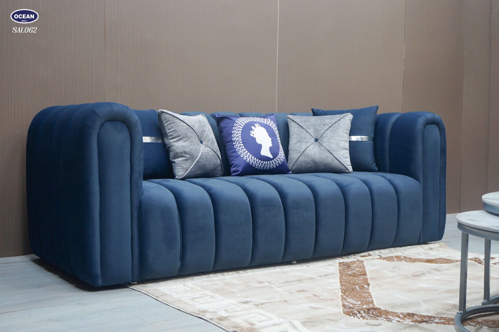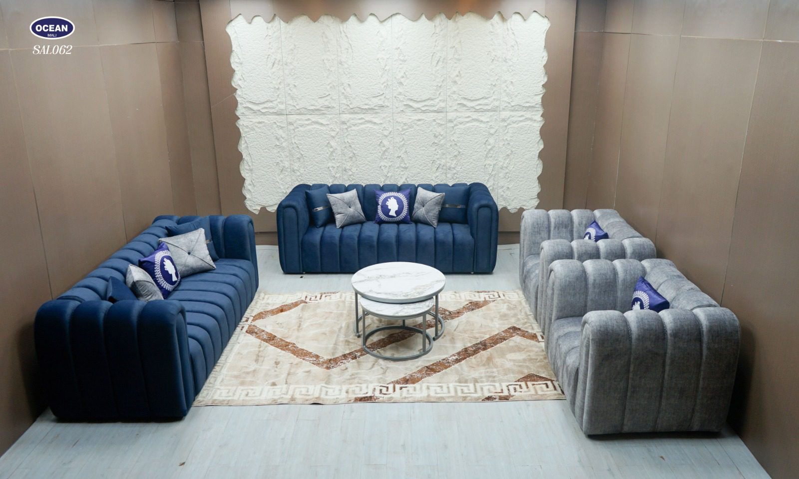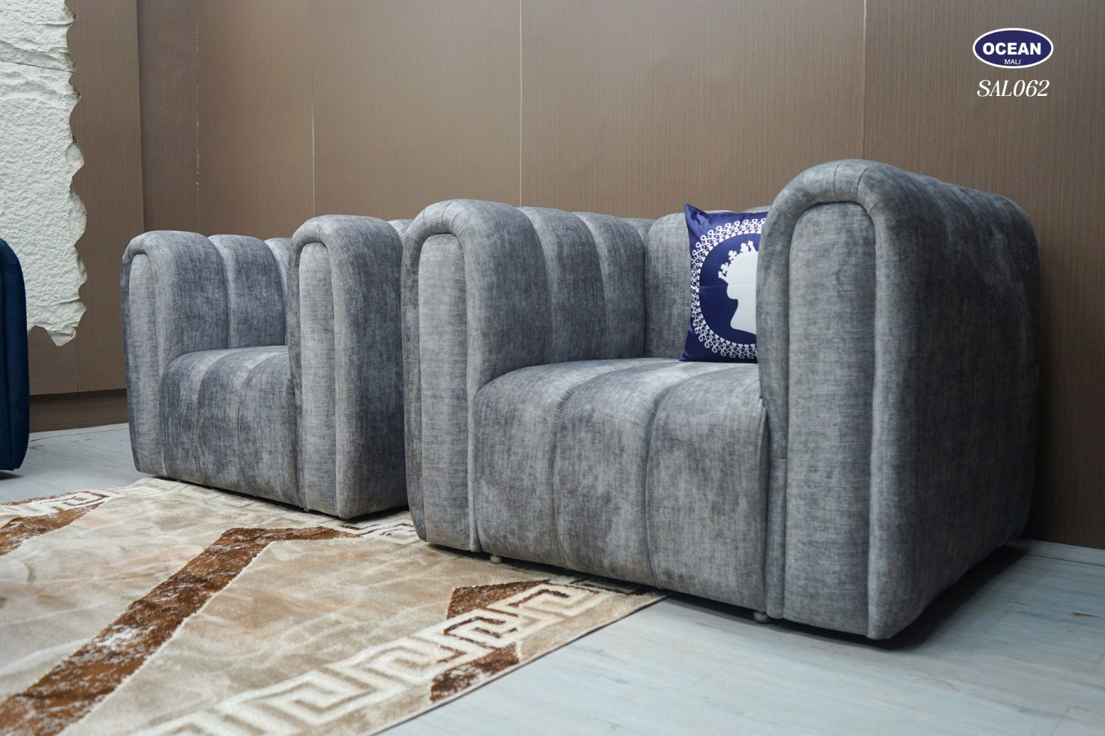 Ce salon complet redéfinit le confort contemporain grâce à son design audacieux et ses finitions raffinées. L’ensemble se distingue par un travail de capitonnage vertical (cannelures) qui apporte une texture rythmée et une profondeur visuelle unique à chaque pièce.
