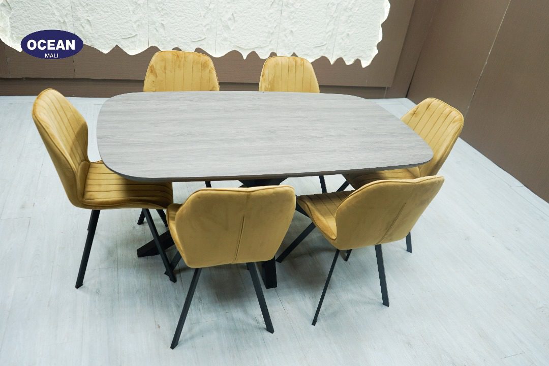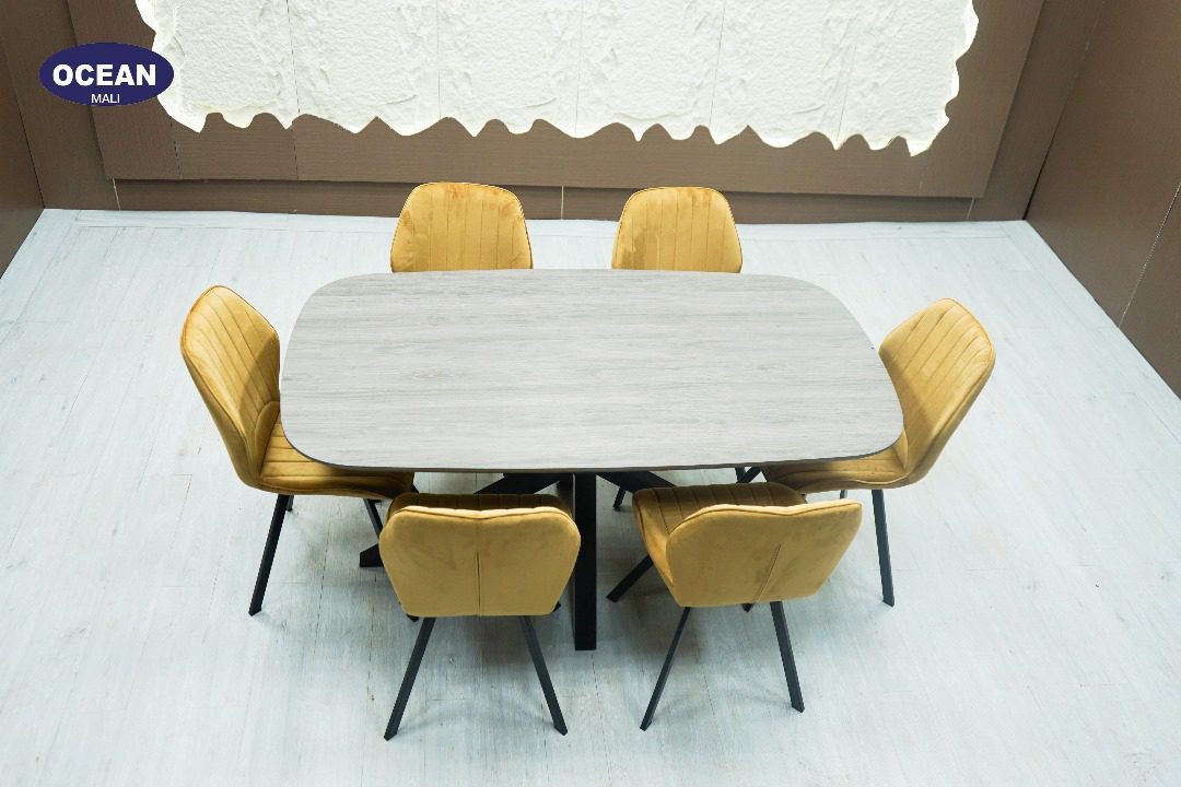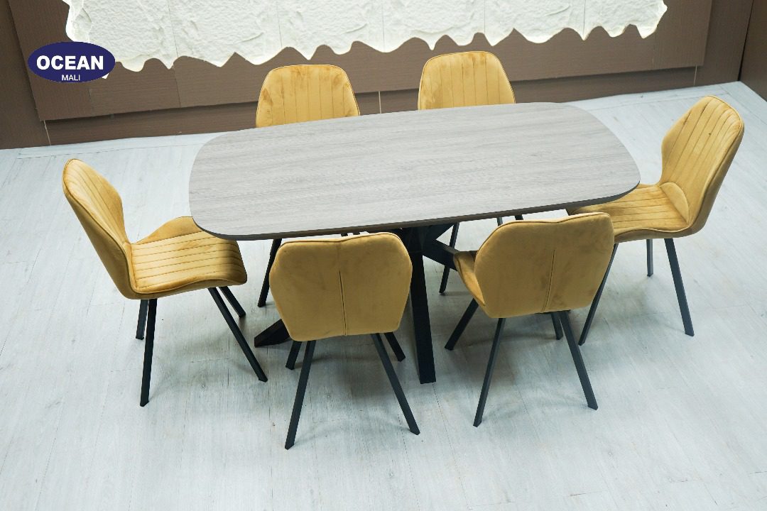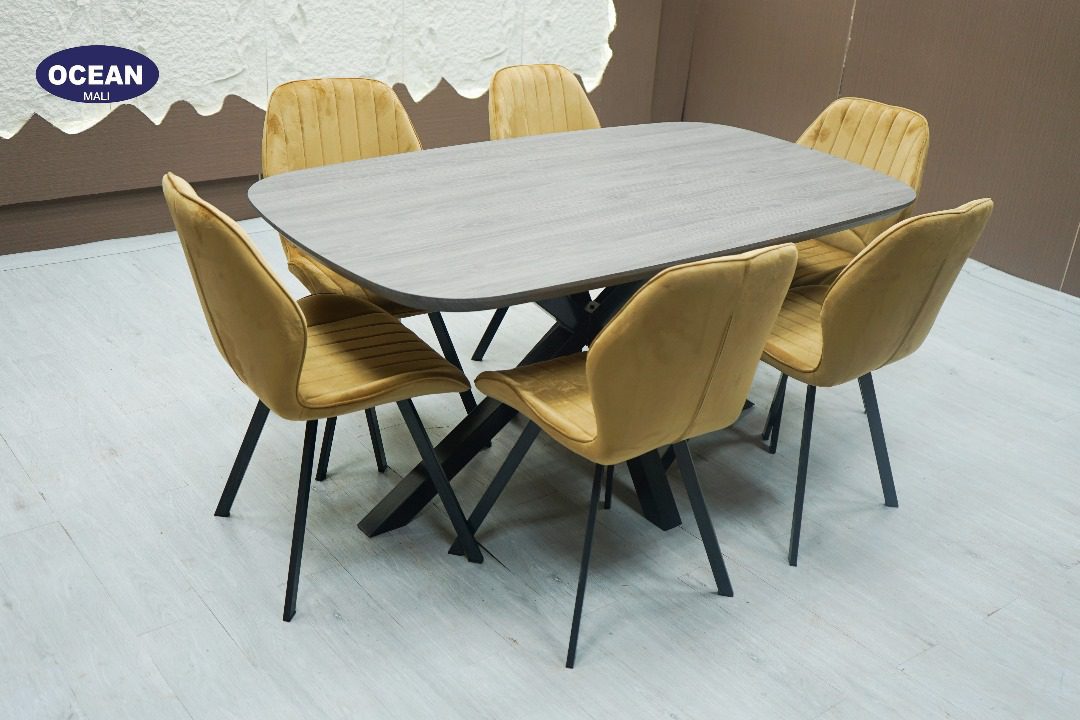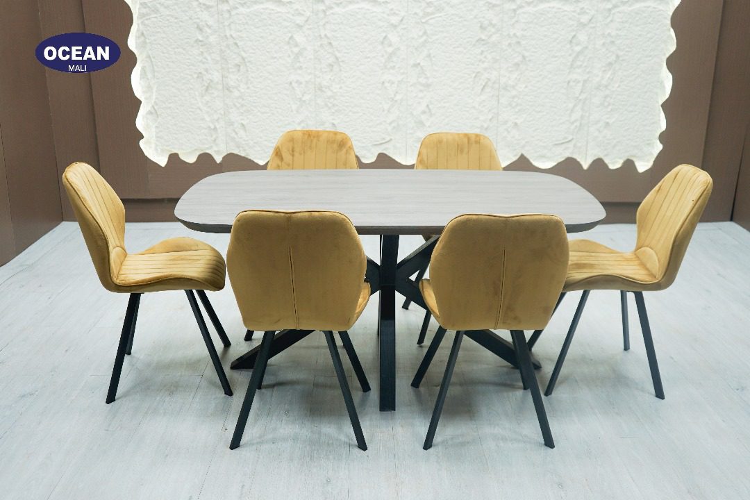 Apportez une touche de raffinement à votre salle à manger avec l’ensemble Élégance. Sa table au design moderne et ses chaises en velours doux couleur moutarde offrent à la fois confort et style. Idéal pour partager des moments conviviaux en famille ou entre amis.