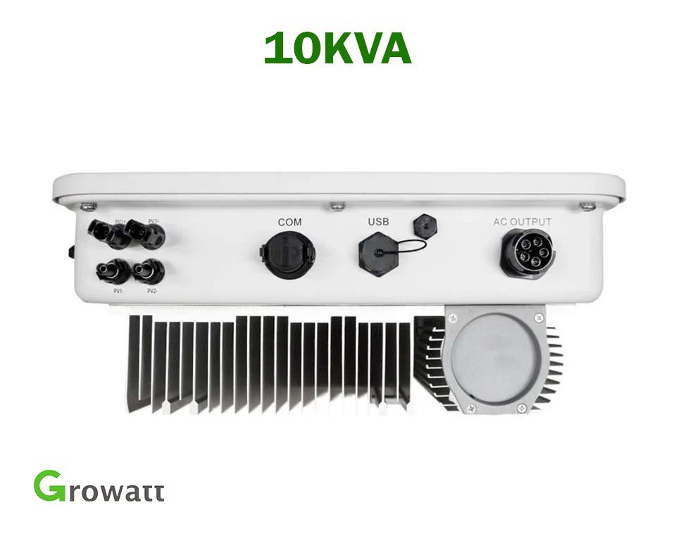 L’ onduleur Growatt 10 KVA est généralement utilisé dans les systèmes d’énergie solaire résidentiels, commerciaux ou industriels de plus grande taille. Growatt est un fabricant bien connu d’onduleurs solaires, et leurs modèles 10 KVA sont conçus pour fournir une conversion efficace de puissance CC en CA pour les systèmes solaires hors réseau et sur réseau.
