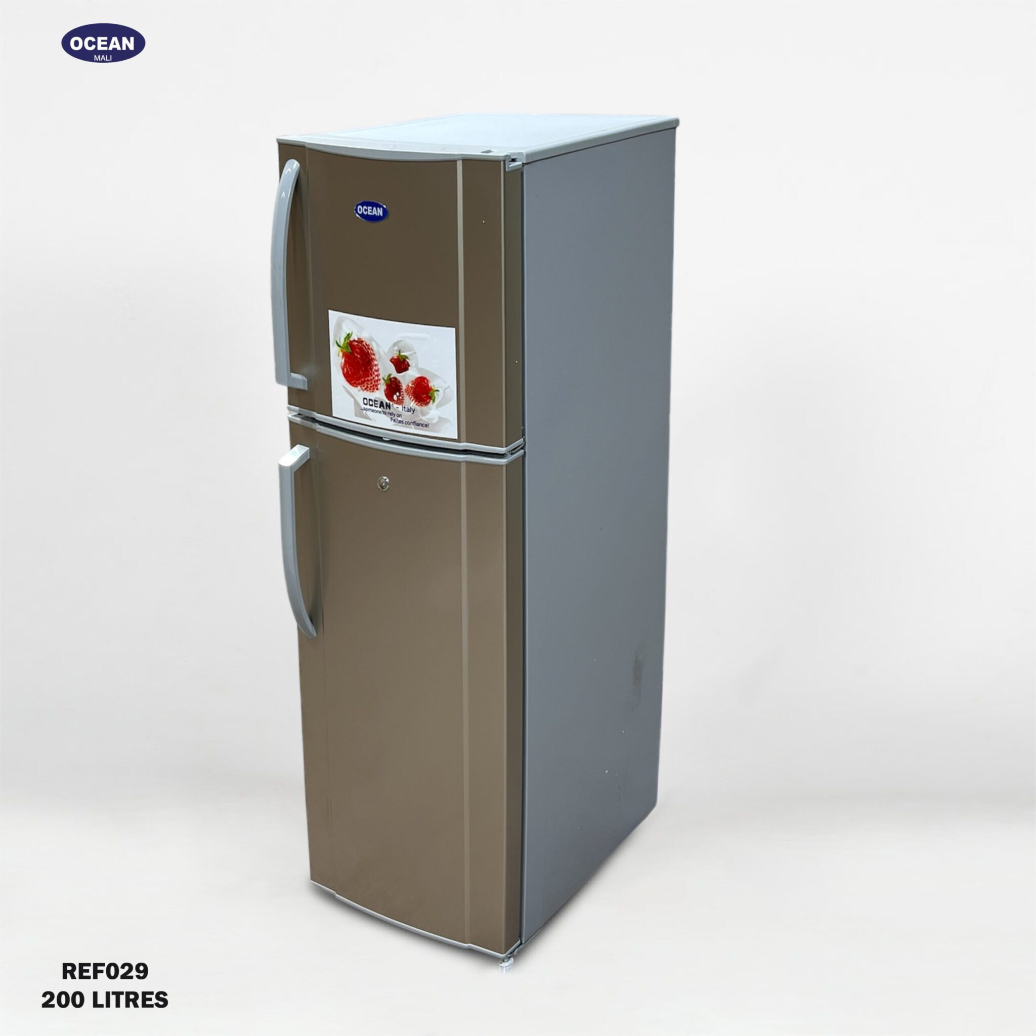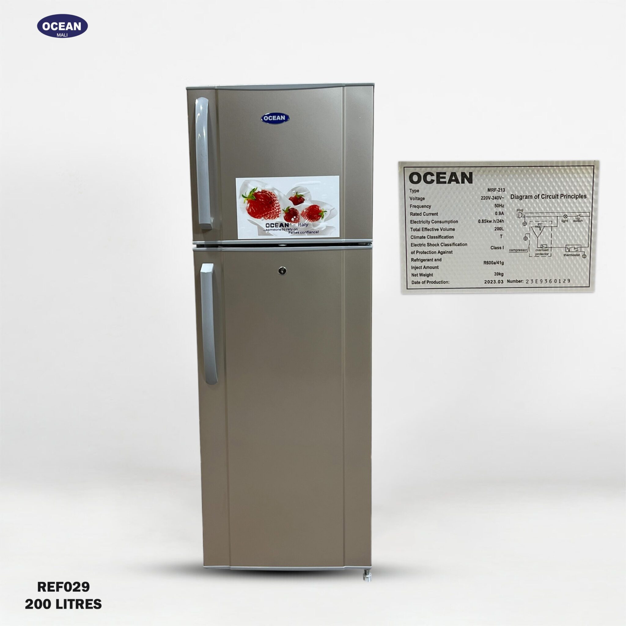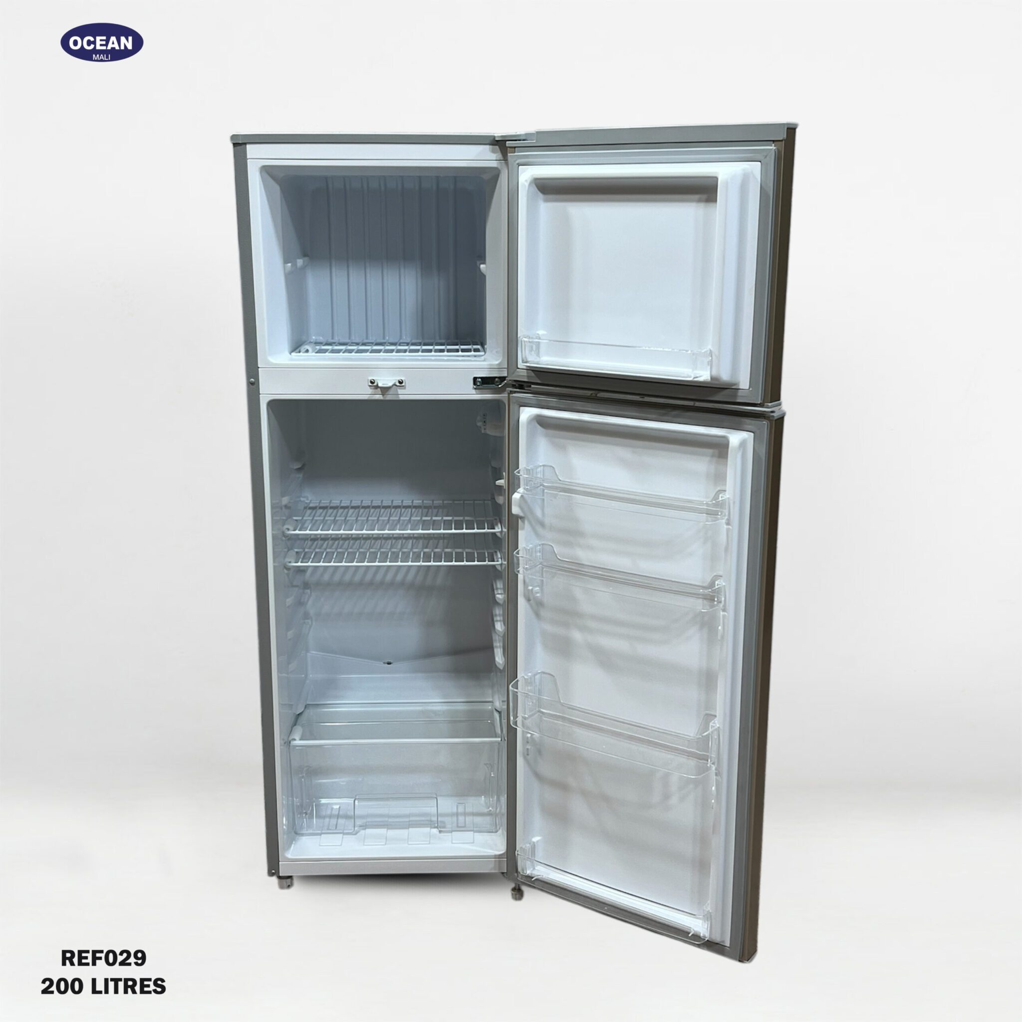 Avec une capacité totale de 200 litres, ce réfrigérateur offre un espace de stockage suffisant pour une personne seule ou un couple. Il se compose d’un compartiment réfrigérateur et d’un compartiment congélateur, permettant de conserver aussi bien des aliments frais que surgelés.