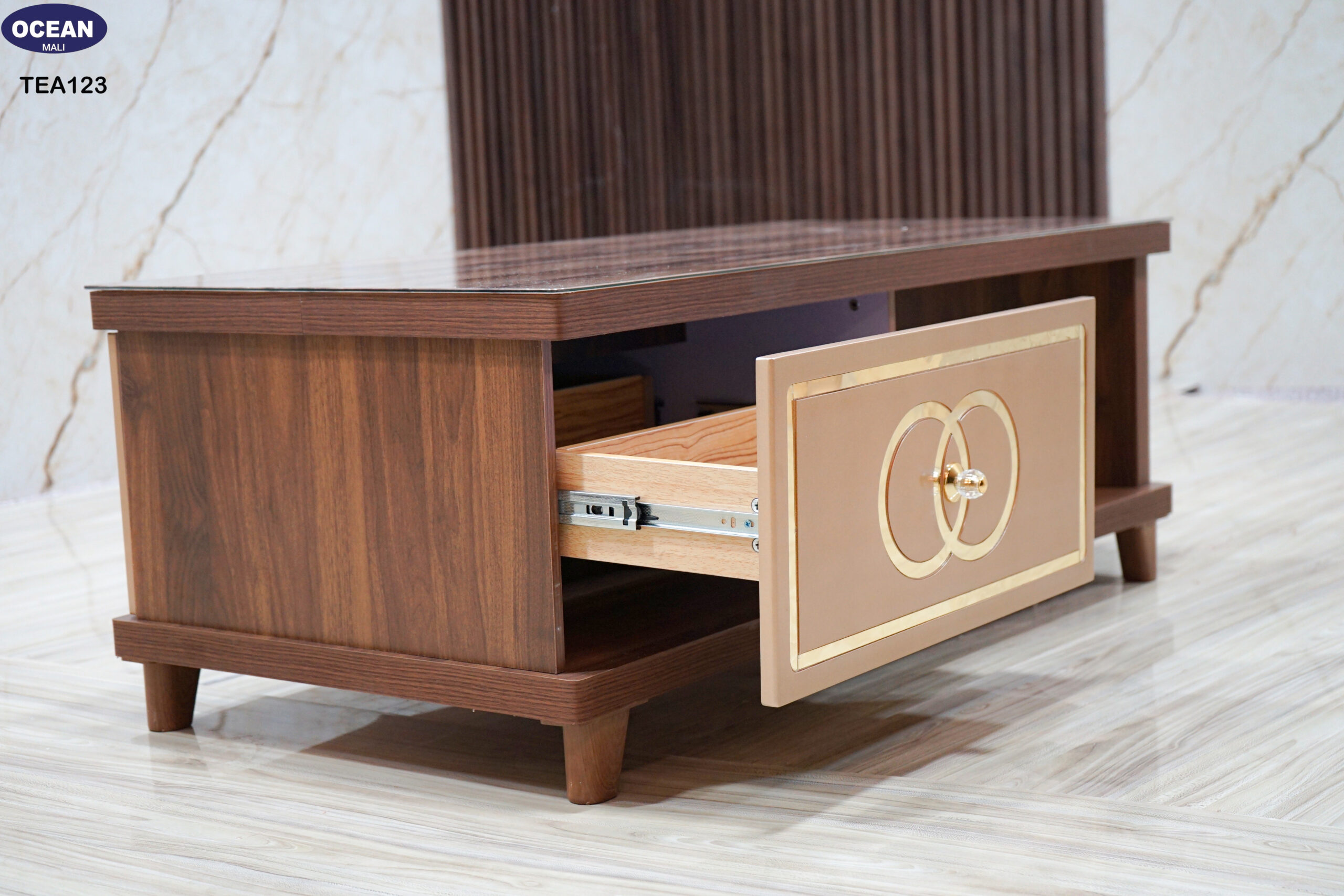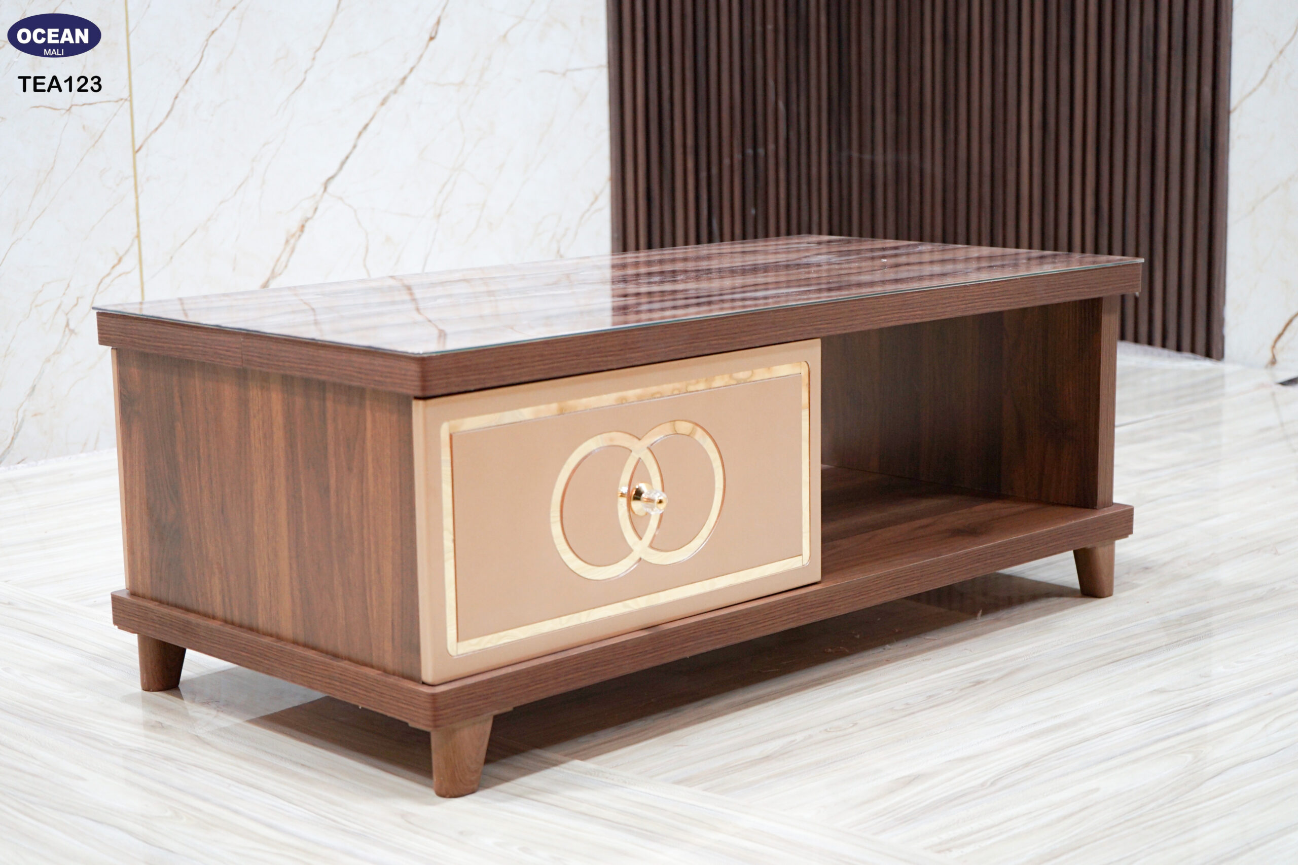 La table basse Élégance Bois et Or est un véritable écrin pour votre salon. Son plateau en verre teinté apporte une touche de modernité, tandis que la structure en bois massif et les détails dorés créent une ambiance chaleureuse et raffinée. Le tiroir discret offre un espace de rangement supplémentaire.